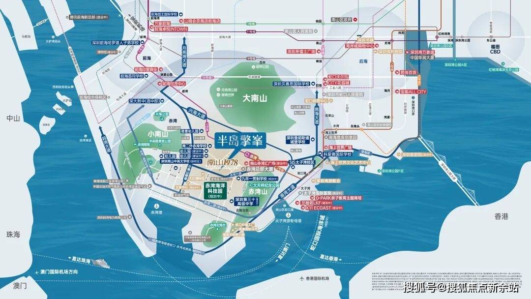 远景下正在大的,界湾区的谋划理念中国南山以同步世,-后城”的都邑形式打制“前港-中园。的资源禀赋上风并依托3山1海,六大街区组团”的远景谋划以“两环、三心、三轴、,区的寰宇半岛生涯打制矗立深圳湾。